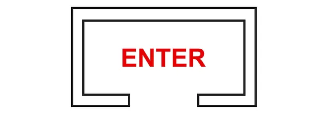The above “ENTER” is written inside the ancient Egyptian hieroglyph for ‘house’ (pr). To its left the Hawk, the hieroglyph of Horus (ḥrw), and to the right the Ibis, hieroglyph of Thoth, or Tahuti.