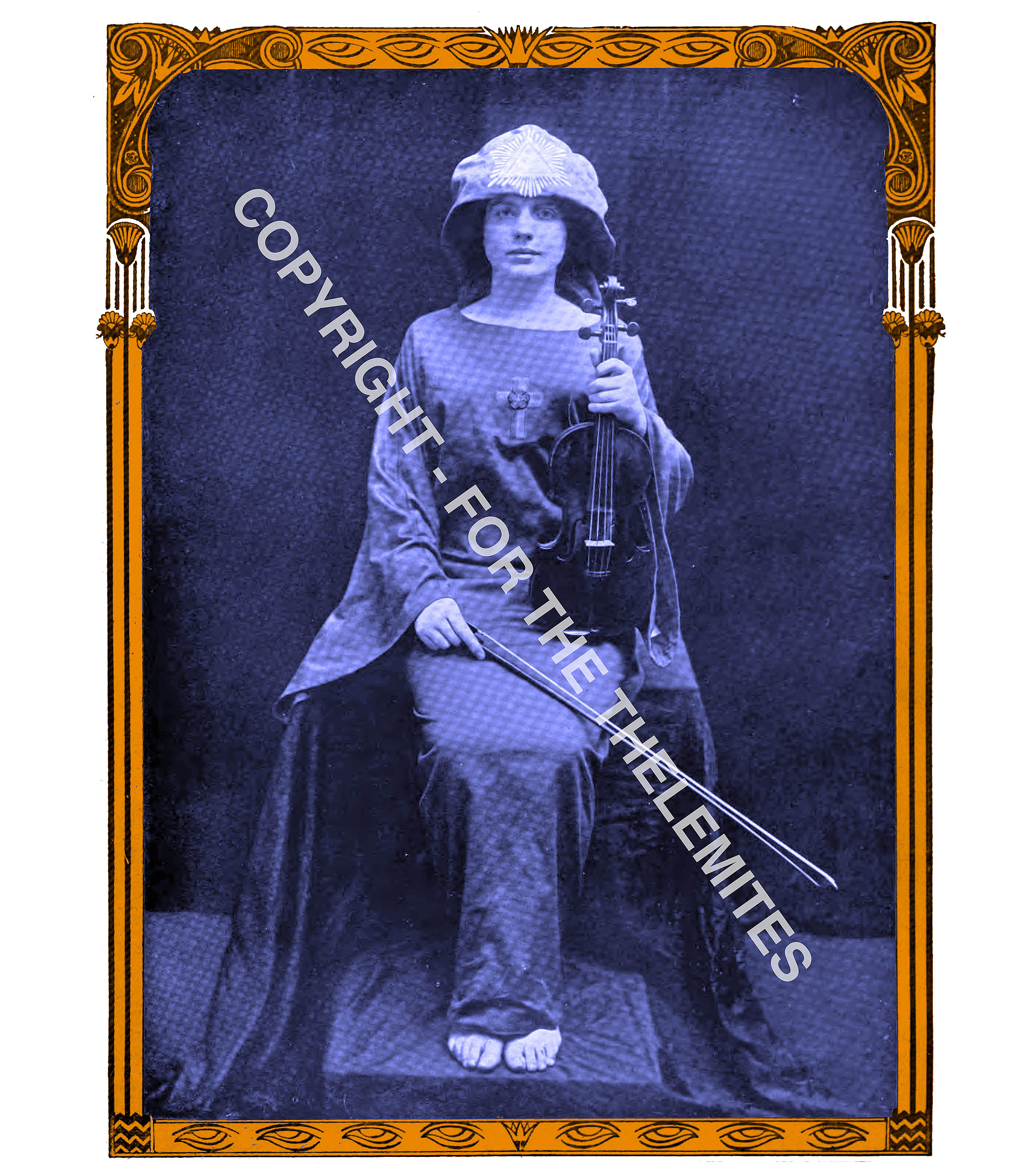 • The Rites of Eleusis, mentioned above, were seven rituals, one for each of the planets in traditional astrology (Saturn; Jupiter; Mars; Sol; Venus; Mercury; and Luna), performed at Caxton Hall, Westminster, London, on Wednesdays from October 19 to November 30, 1910 E.V.: “Miss Leila Waddell and Mr. Aleister Crowley with Distinguished Assistance”. Seen on the picture is “The Goddess”, Australian violinist and A .·.A .·. Soror Leila (Ida) (Nerissa) (Bathurst) Waddell (1880-1932).