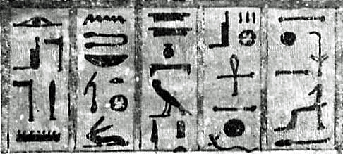 • Regarding Aleister Crowley’s use of the phallus as his personal symbol, above is seen the ancient Egyptian hieroglyph for ‘sma-priest’, and as seen on the ‘Stélé of Revealing’ so was the Theban priest Ankh-af-na-khonsu also a ‘sma-priest’ – this title is also found twice on his smaller sarcophagus as ‘sma-priest of Kamutef’, the ithyphallic Amun-Re-Kamutef. It has been suggested that the hieroglyph depicts a conventionalized phallus sheath. (See also the extract "666 and 616".)