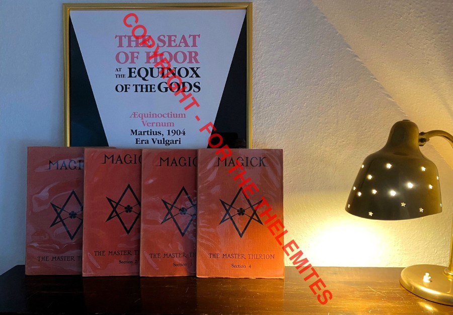 • First edition of Magick in Theory and Practice as four sections in red textured wrappers. For the publication of the work, see the extract “February 1913 E.V.”