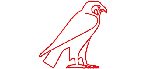 • The hieroglyph showing the Hawk; Falcon, ideogram in the name of Horus or Hoor, transliterated fully as ḥrw, commonly ḥr – thus, also found as 'Hor'; 'Har'; and 'Heru'.